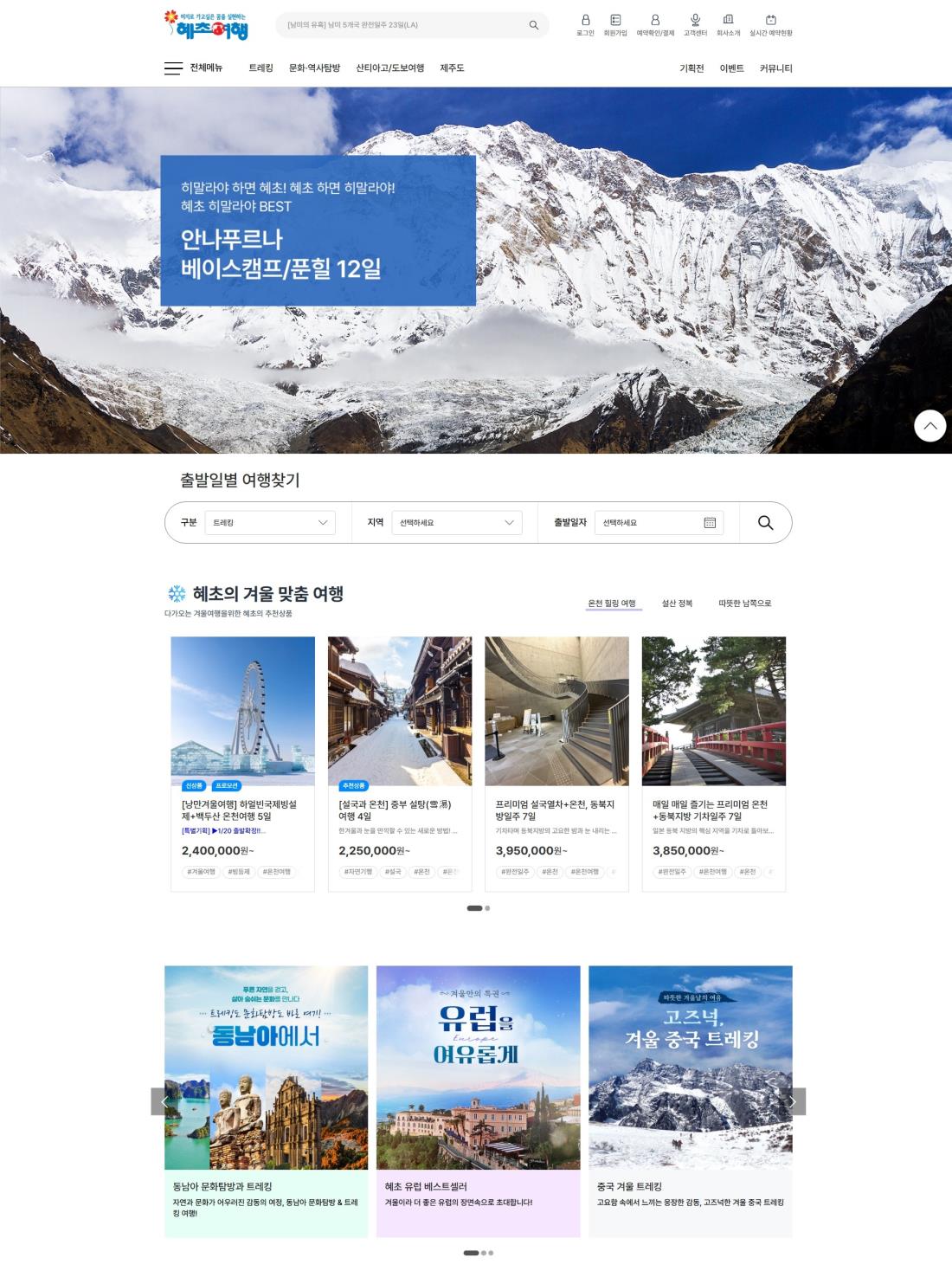 혜초여행의 상품을 보다 쉽게 살펴보실 수 있도록 메인 화면 구성을 개선하였습니다.