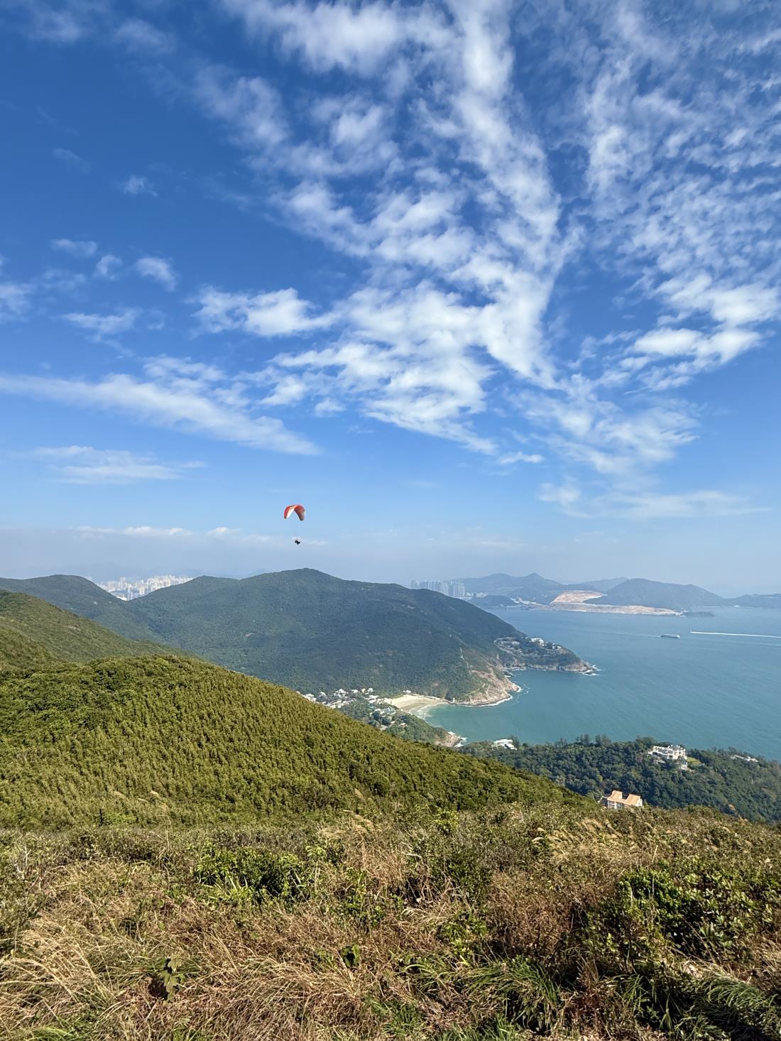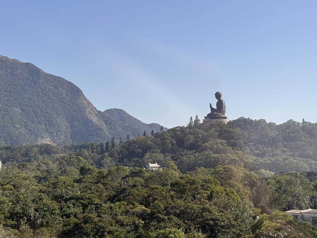 뒤로는 마카오 방면의 해안과 홍콩 첵랍콕 공항이 한눈에 보입니다.
