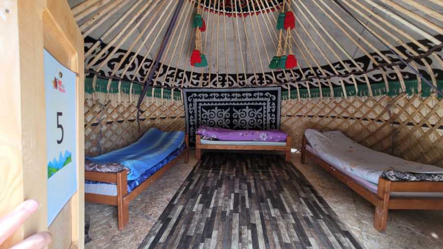 - 키르기즈 전통 이동식 천막집인 유르트, 숙박은 다인실입니다.