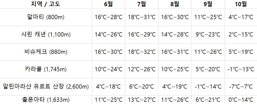 - 알틴아라샨 트레킹 & 카자흐스탄 트레킹 중에는 통신이 불가능합니다.