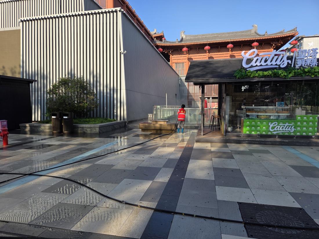 (거리 청소를 바닥은물분사기,쓰레기통은 걸레와 마대로 거리를 호텔 로비처럼 깨끗하게)