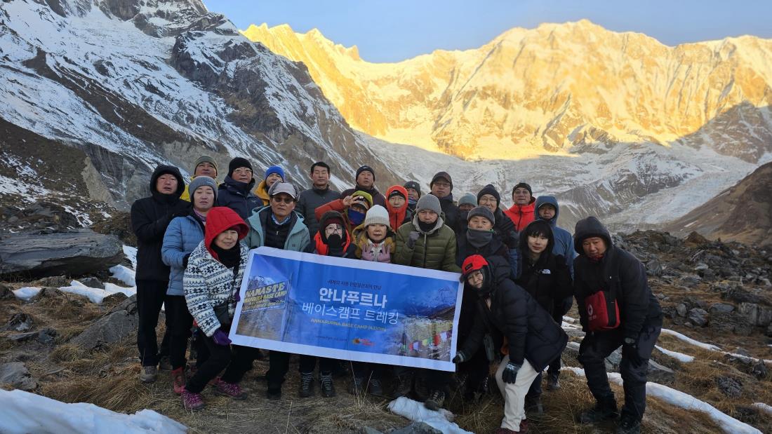 염려대로 2천미터 이상 부터 변화가 느껴져 고산증 완화 예방차원에서 약 복용했으나 3천미터 넘어가니 빨라진 호흡,울렁거리는 속, 어질어질 어지럼증 부여잡고 주변에서 도와준 양형준인솔자님 메인가이드 라메시와 특히 제 베낭까지 들어 준 보조가이드님과 최대로 천천히 한발 한발 걷고 걸어 ABC 안나푸르나 베이스캠프 끝까지 완주할 수 있었다. 매 끼니 한식으로 잘 먹을 수 있게 해 준 주방헬퍼와 여유로운 일정 진행으로 저와 같은 초보자도 낙오하지 않고 끝까지 동참 할 수 있지 않았나싶다. 평생 잊지 못 할 가슴벅찬 감동을 준 장엄한 모습의 안나푸르나! 단 한 명의 낙오자 없이 여정 마친 함께한 22명 존경하며 해초여행사 통해 배운 여유로움과 배려를 토대로 남은 시간 잘 ~~~보내며 살아야겠다.