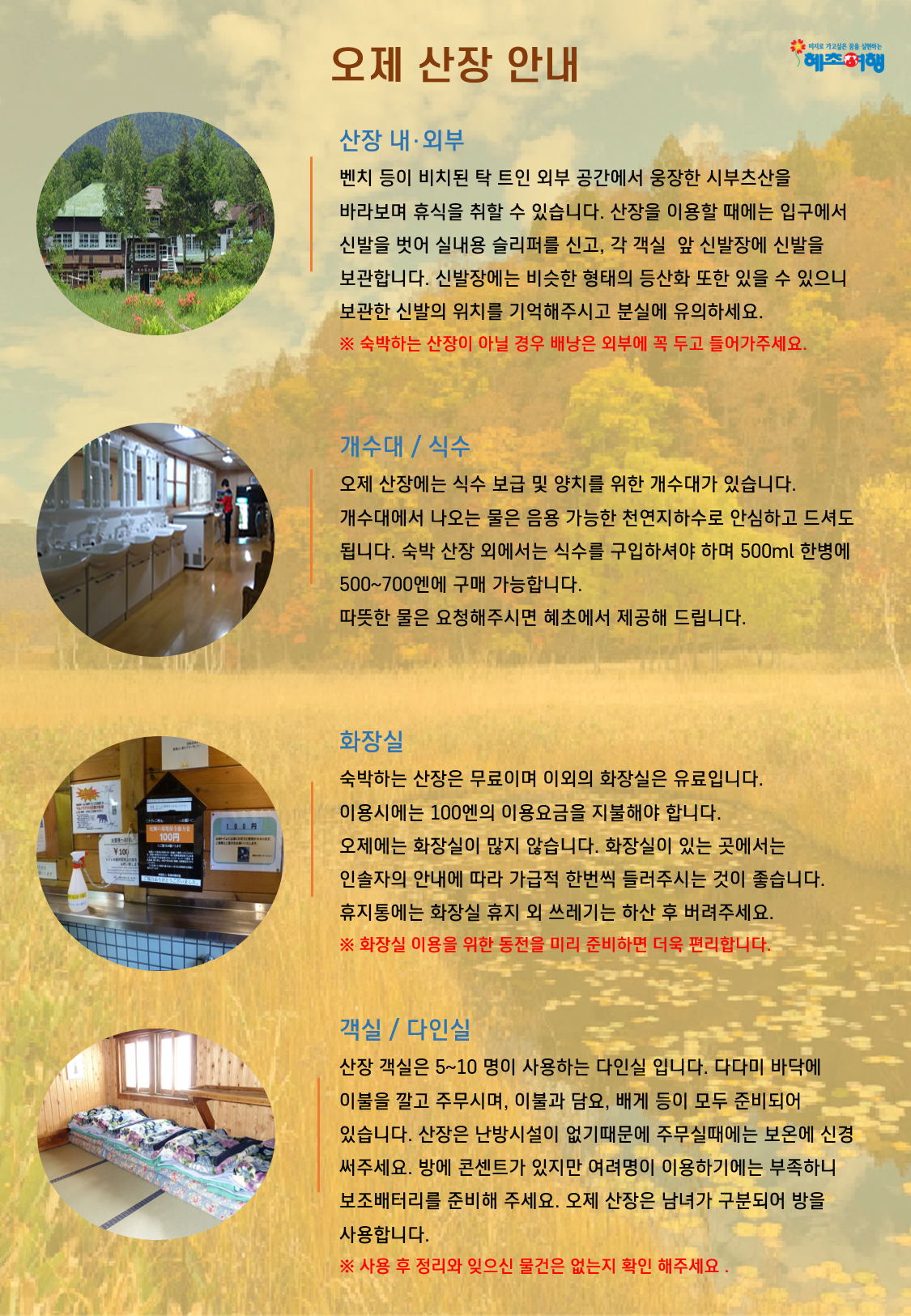 ■ 산장은 독실 이용 불가
