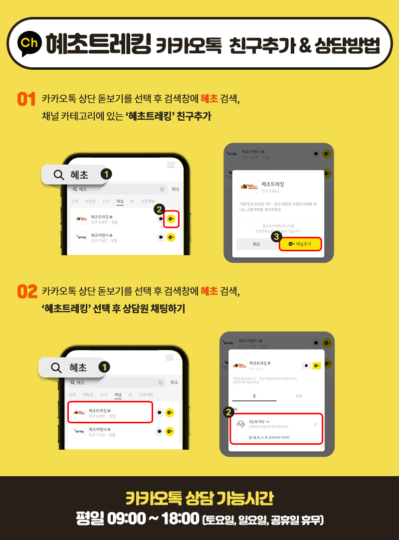 - 혜초트레킹 카카오톡 링크: http://plus.kakao.com/home/gdp2fx16