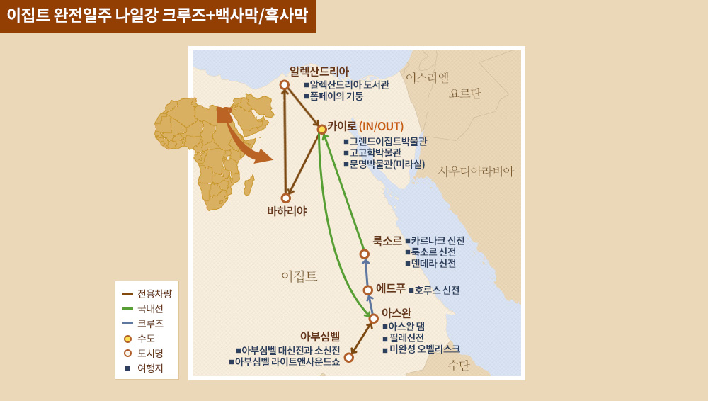 카이로-아스완-아부심벨-콤옴보-에드푸-룩소-기자-바하리야-알렉산드리아