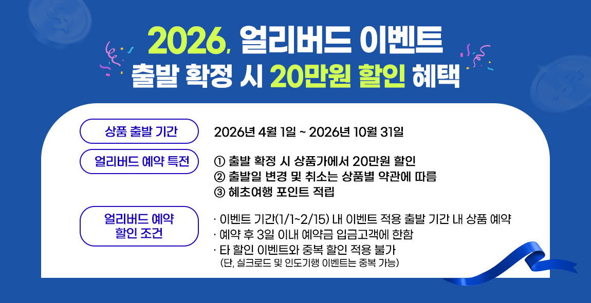 • 유류할증료 및 제세공과금은 유가와 환율에 따라 변동될 수 있습니다.
