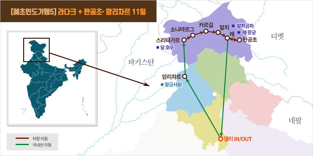 델리-암리차르-스리나가르-소나마르그-카르길-알치-레-판공초-레-델리