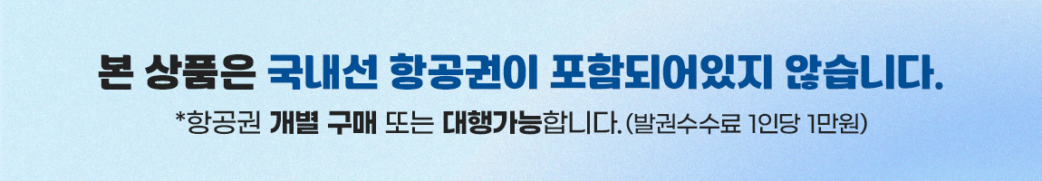 또한 마일리지(무료 항공권)를 이용하여 방문하시는 고객님들이 많아, 항공권 요금은 상품가에 포함되지 않은 점 양해 부탁드립니다.