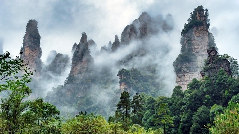 ▲영화 '아바타'의 배경으로 모티브가 되었던, 원가계 풍경구에서 기념사진을 촬영해보세요.