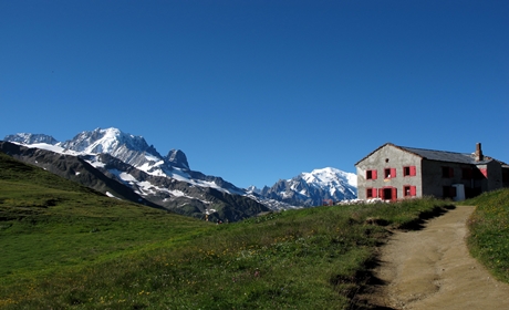 ▲ 르 뚜어(Le Tour)에서 트레킹을 시작하여 멋진 몽블랑을 뒤로 걷다보면 어느새 프랑스와 스위스의 국경지대인 발므고개(Col de Balme)에 이르게 됩니다. 그곳의 발므산장에서는 푸르른 알프스와 몽블랑을 둘러싼 장엄한 파노라마가 한눈에 펼쳐집니다.